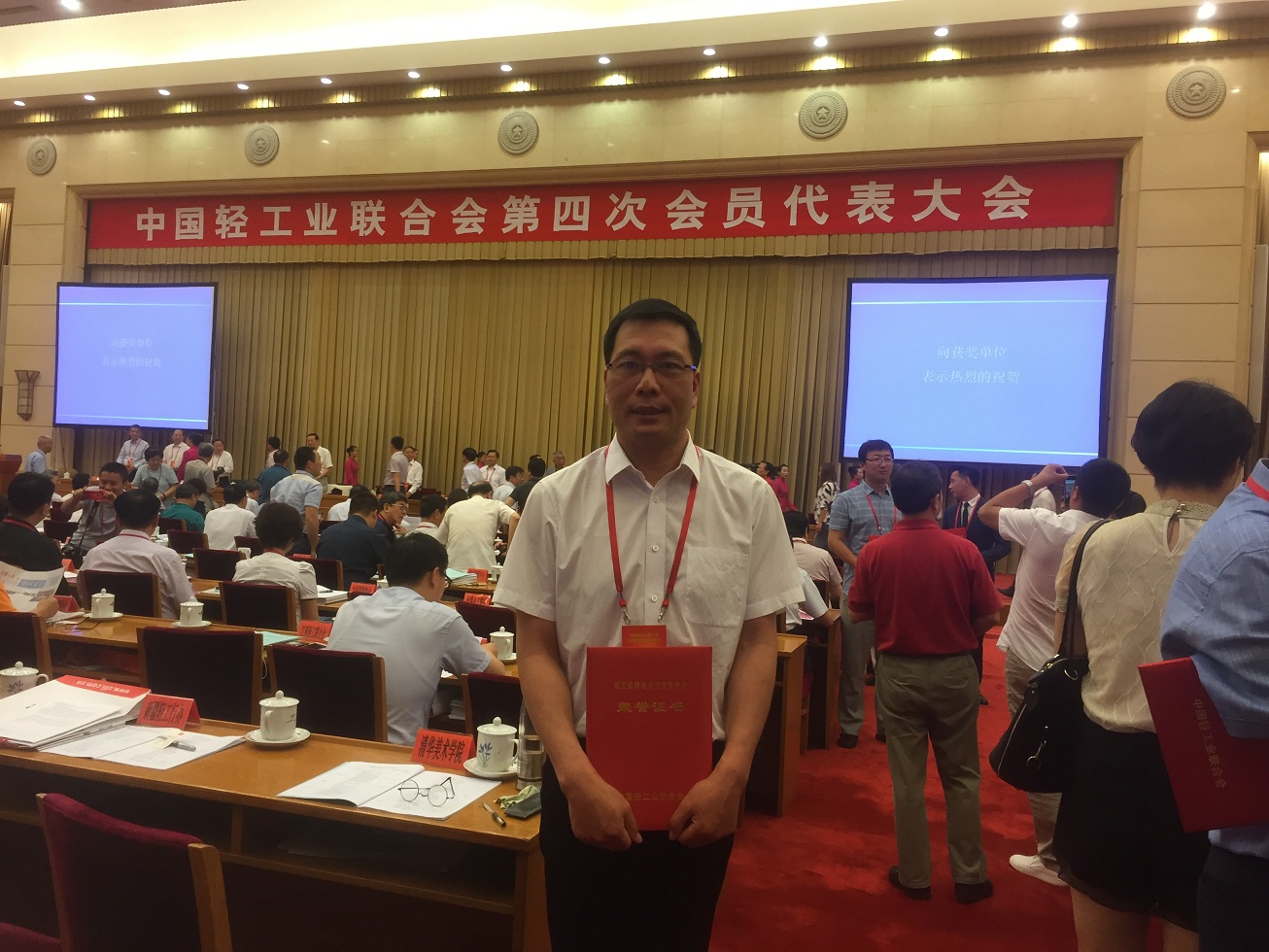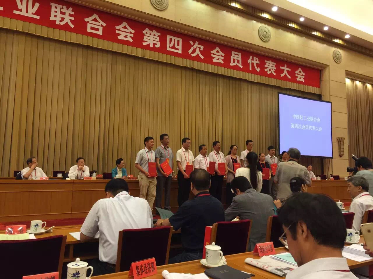 中國(guó)輕工聯(lián)合會(huì)第四次會(huì)員代表大會(huì)于2016年6月21日在北京京西賓館隆重召開(kāi);出席會(huì)議的有全國(guó)人大副委員長(zhǎng)顧秀蓮、多位國(guó)家部委的領(lǐng)導(dǎo)、中國(guó)協(xié)會(huì)的領(lǐng)導(dǎo)、輕工業(yè)聯(lián)合會(huì)代表、輕工業(yè)多位老領(lǐng)導(dǎo)以及各獲獎(jiǎng)代表共計(jì)五百多人參加。